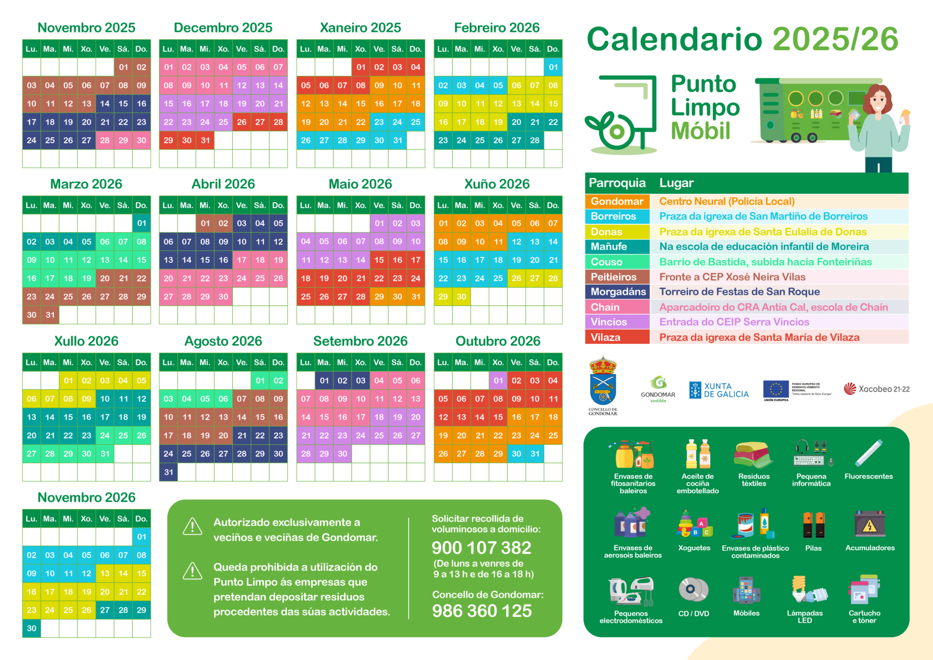 O Punto limpo móbil percorrerá todo o municipio e colocarase nas zonas especialmente habilitadas de cada parroquia.