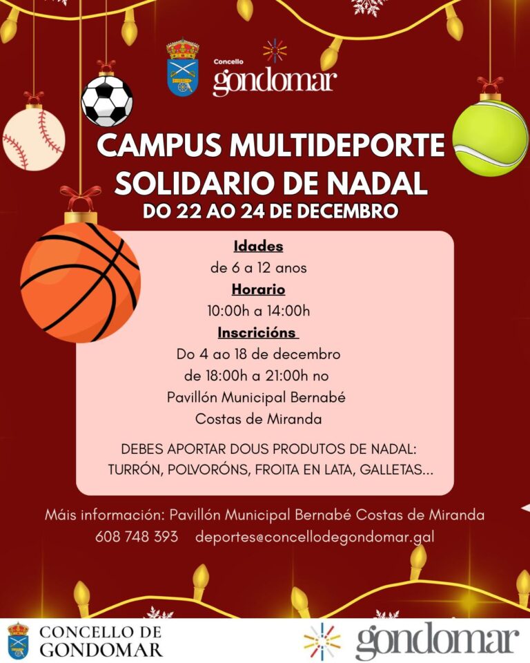 📅 Datas do campus: Do 22 ao 24 de decembro 📝 Inscricións: Do 4 ao 18 de decembro 📍 Lugar: Pavillón Municipal Bernabé Costas