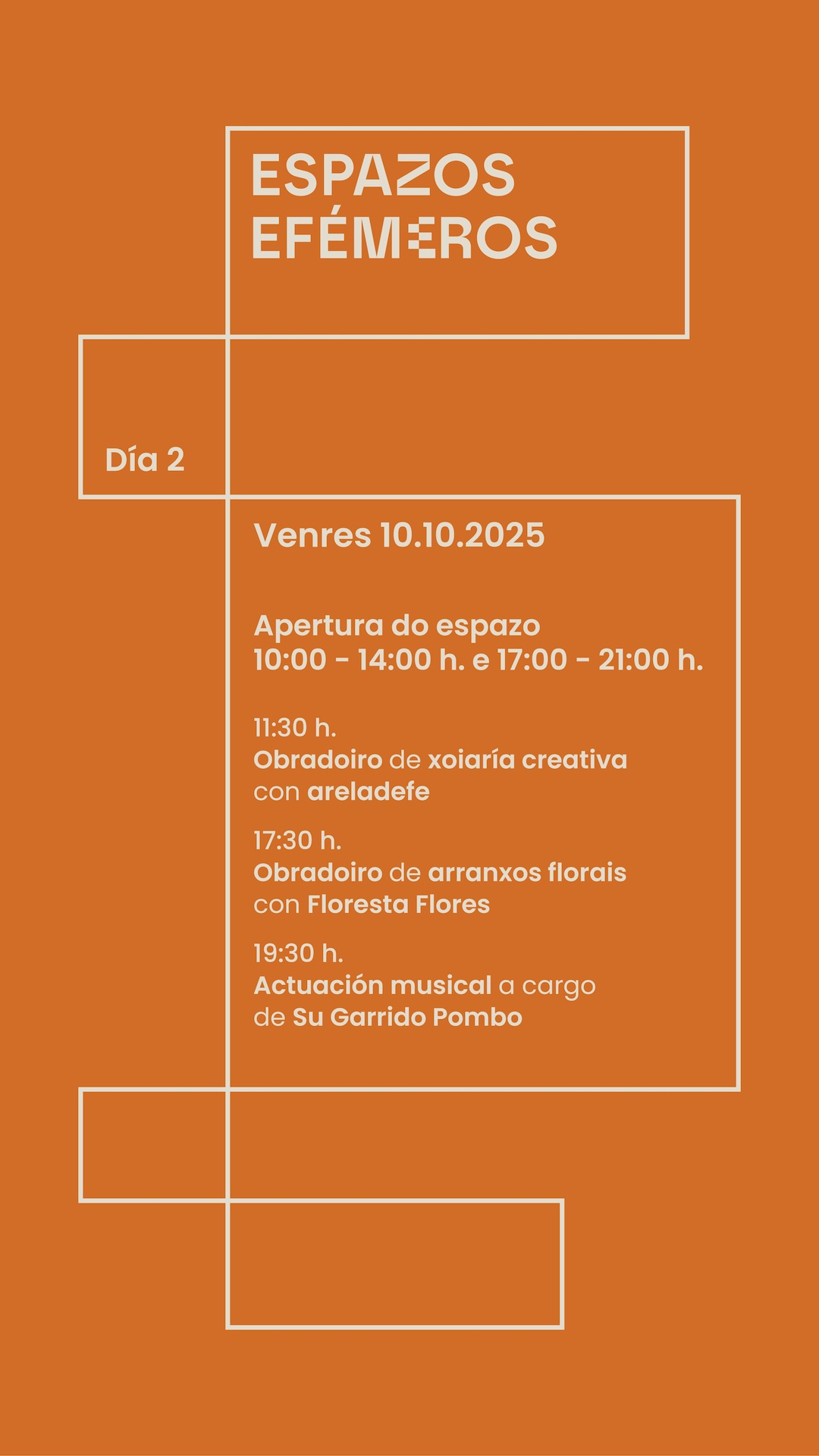 O Concello de Gondomar lembra que entre os días 9 e 12 de outubro de 2025 terá lugar no noso municipio o primeiro Espazo Efémero. Unha iniciativa do proxecto liderado polo GDR Galicia Suroeste Eurural, que busca revitalizar o comercio local e crear espazos de encontro e inspiración no medio rural.